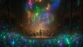 日が沈み始めると同時に、幻灯家の庭には布製のテントがゆらめく霧気とともに現れる。暁人さん(幻灯家三代目)は古い提灯に亡き祖母の思い出を灯し、家族で囲むキャンプファイヤーの周りにふわりと浮かぶ椅子やテーブルを配置。コウモリ型のデザートや「ひょうたんランプ」の小さな宴会が始まると、近所の河童少年が手作りのスモーク水餃子を持ち寄って、異界交流も自然と盛り上がる。