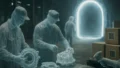 深夜の墓地公園では、幽霊ランナーたちがアプリの通知と共に静かに駆け抜けている。