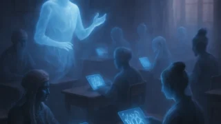 デジタル教育 浮遊小学校で“タブレット反乱”発生——幽霊児童、アナログ教材を求めデジタル廊下デモ