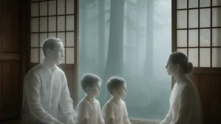 霧深い夜明け、死後の世界でも地方移住ブームが静かに広がっている。なかでも注目を集めているのが、千年杉の森に囲まれた幽谷里(ゆうこくり)村だ。ここで最近、都市部から移住した幽霊一家・淡島慶司(40没)、妻の雅(38没)、双子の息子たち(10没)が、テレワークと自然豊かな子育ての新しい形を実践し、死者コミュニティに新風を巻き起こしている。